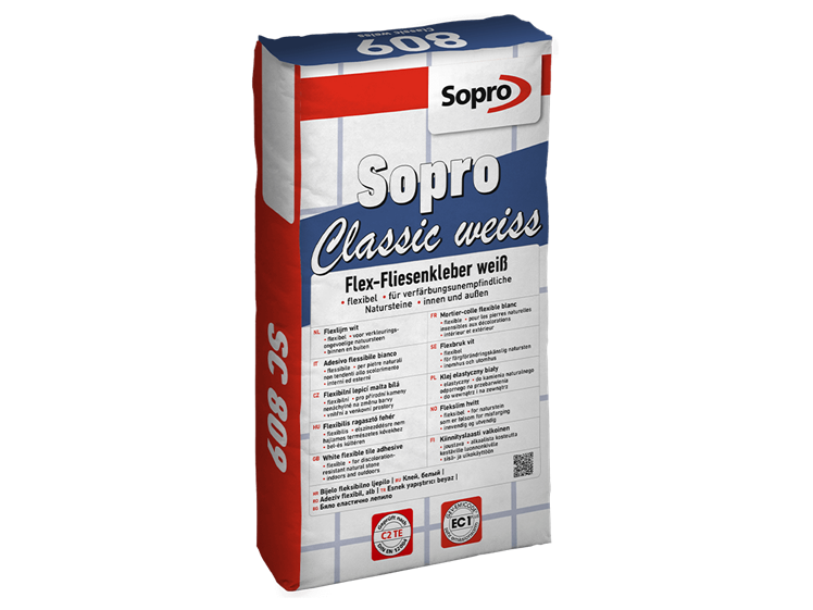 La propriété principale du mortier-colle flexible blanc à base de ciment est sa très bonne stabilité. Il se travaille très bien et est spécialement conçu pour la pose de pierre naturelle. Ce produit convient aussi bien à la pose de pierre à l’extérieur qu’à l’intérieur.
